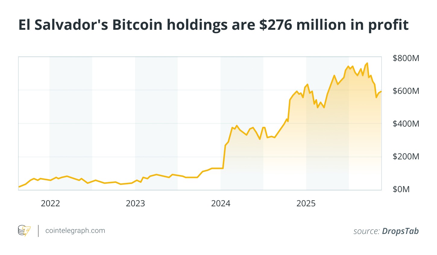 As of Dec. 12, El Salvador holds 6,367 BTC, according to DropsTab’s El Salvador portfolio tracker. It’s worth over $588 million and is $267 million in profit.