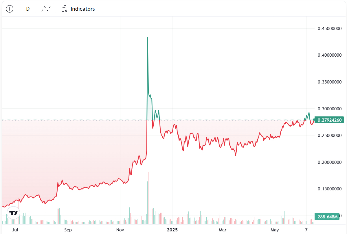 TRX is trading at approximately $0.28, following a modest increase on Monday. Source: Cointelegraph