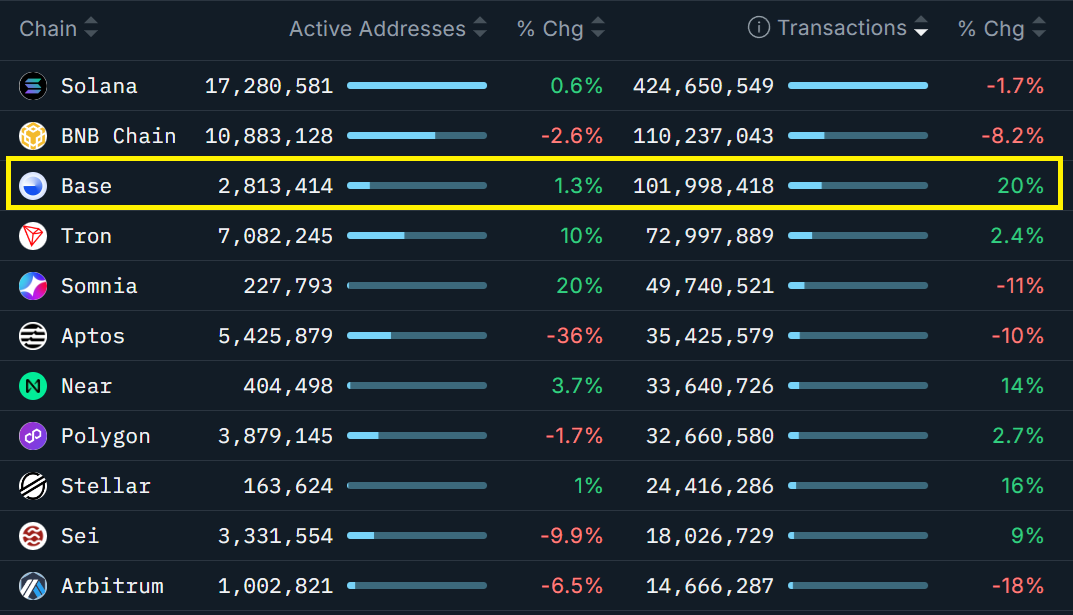 Blockchains ranked by seven-day transactions. Source: Nansen