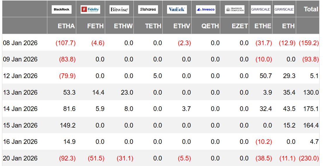 The US-listed Ether ETFs saw $230 million in net outflows on Friday, reversing the previous week’s trend of $96 million in average net inflows. More concerningly, companies that focused on accumulating ETH as a reserve strategy face heavy accounting losses, including Bitmine Immersion (BMNR US) and Sharplink (SBET US).