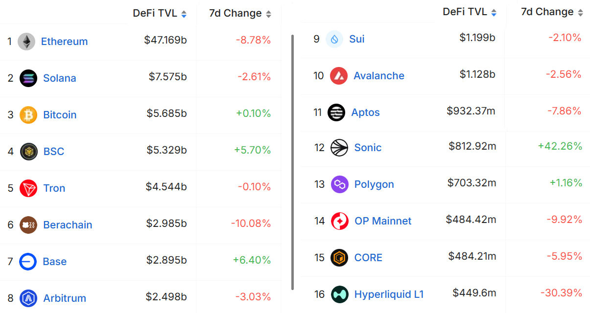 Top blockchains ranked by total value locked, USD. Source: DefiLlama