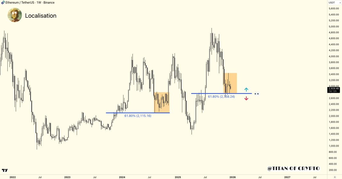 Investor and trader Titan of Crypto said that “ETH has already retraced 61.8% from its last impulsive move,” adding that it is currently at a level where the price often reacts, as seen in mid-2024.
