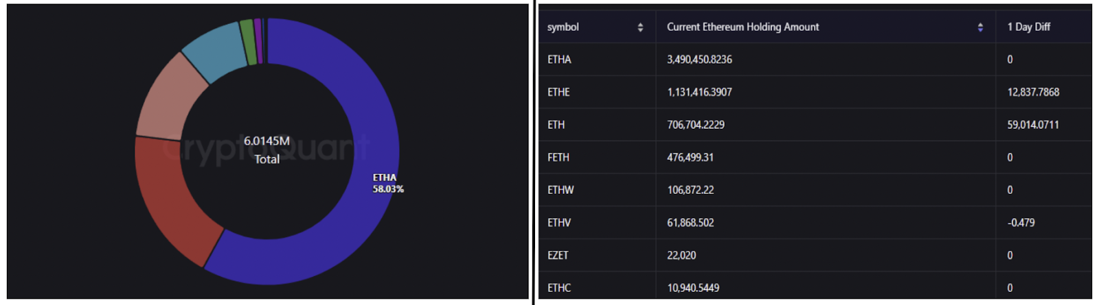Ethereum ETF holdings, amount and percentage. Source: CryptoQuant