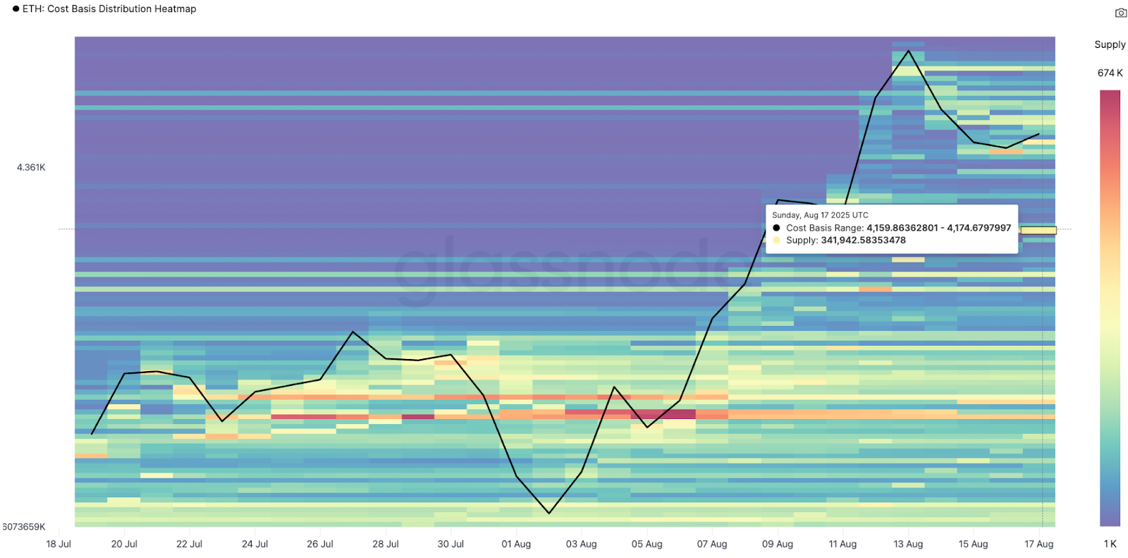 ETH: Cost basis distribution heatmap. Source: Glassnode