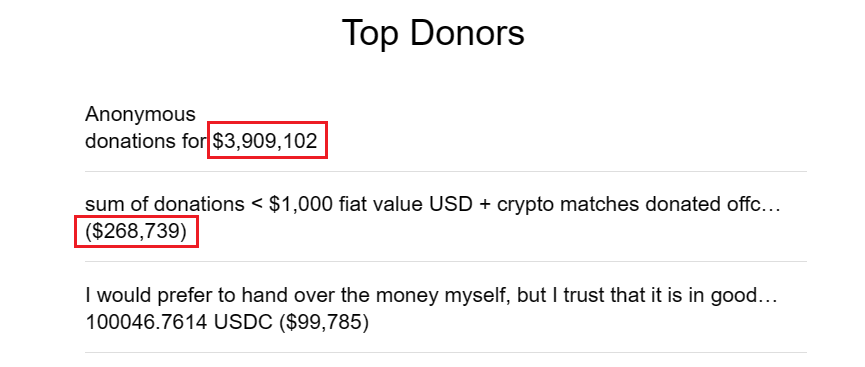 As shown above, anonymous donors accounted for $3.9 million of the total campaign donations.
