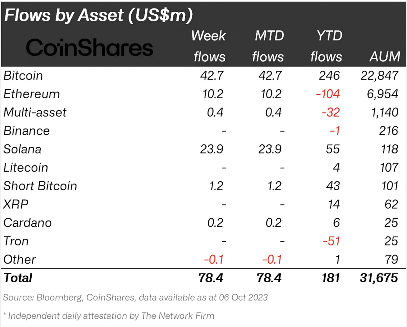 For instance, as of Oct. 6, Bitcoin-specific investment funds had attracted $246 million year-to-date (YTD), according to CoinShares. On the other hand, Ethereum funds have lost capital, witnessing outflows worth $104 million in the same period.