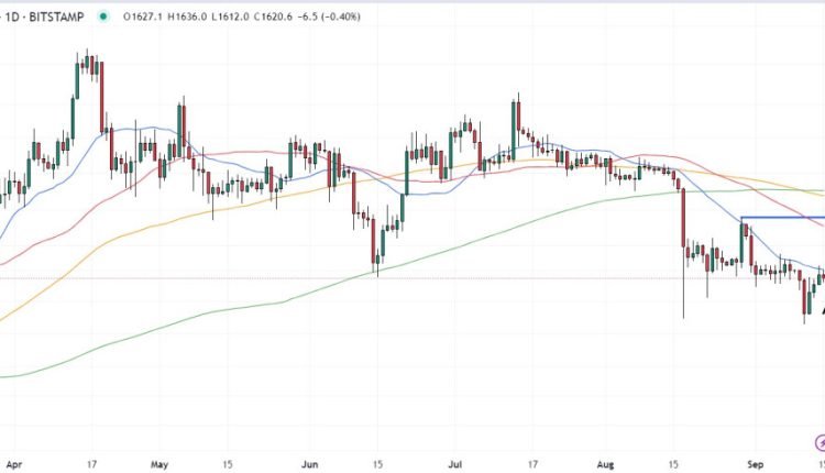 ETH was last trading around $1,620, with the cryptocurrency still finding resistance at its 21DMA, though it remains up around 5.7% from earlier weekly lows.