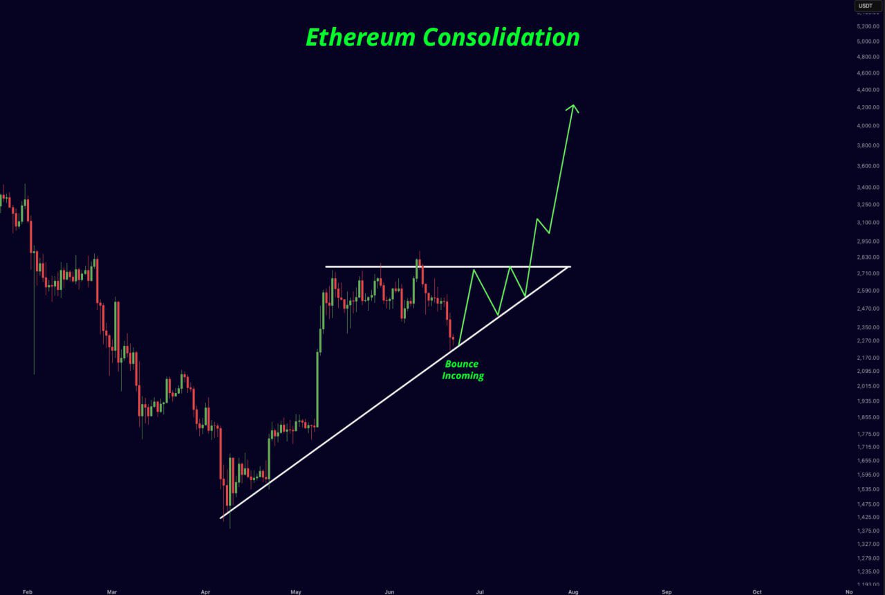 Ether is holding above a key ascending trendline that may lead to a strong bounce in the coming days, according to market analyst Sensei.