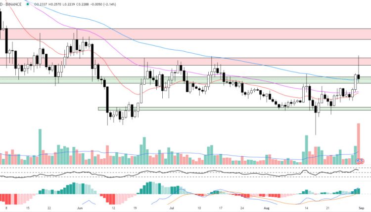 This is contingent on the price holding above the 100-day EMA and the $0.2274 to $0.2314 support zone.
