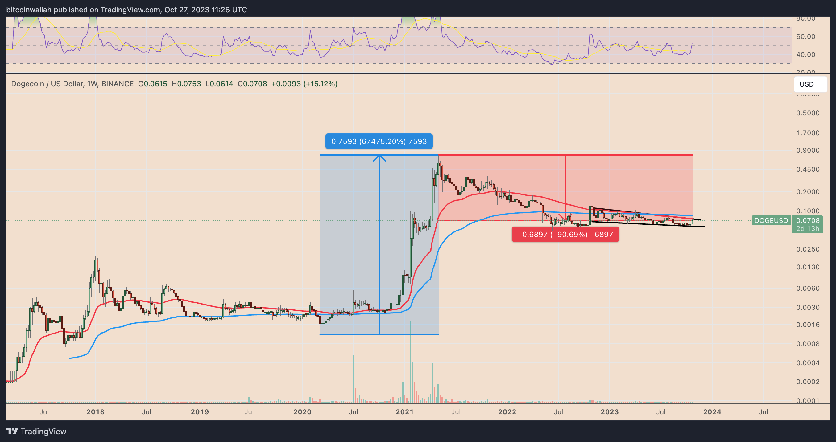 Speculators hunt memecoins for maximum returns in minimum time, typically when risk sentiment is strong across the crypto space. For instance, the 2020 to 2021 crypto bull market saw Dogecoin surging up 67,475% versus Bitcoin’s 1,700% gains.
