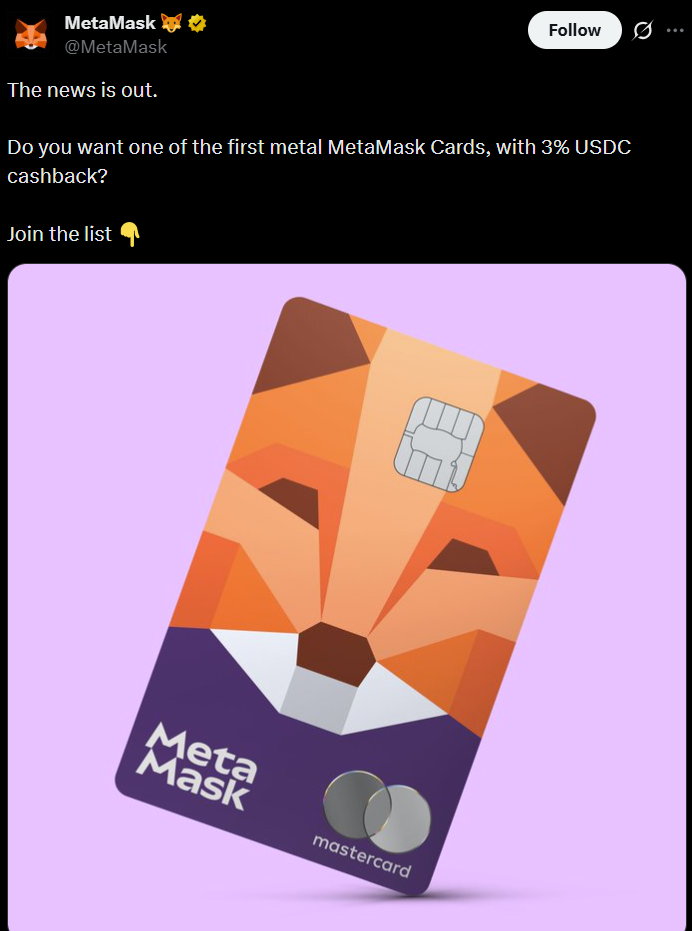 More recently, Mastercard and MetaMask launched a US crypto-linked card that allows users to spend digital assets at any merchant that accepts Mastercard, with crypto converted to fiat at the point of sale.