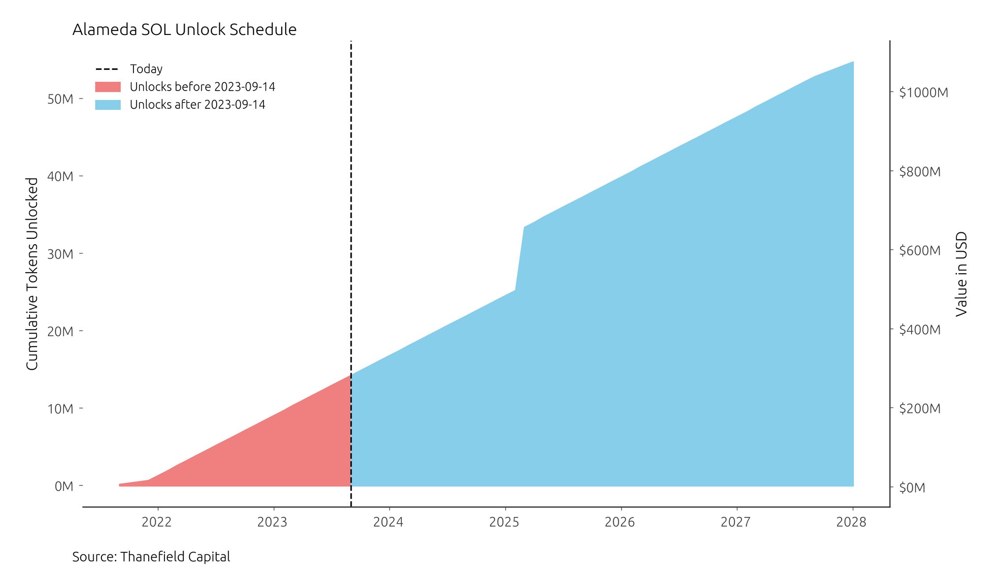 Among all crypto assets held by FTX slated for liquidation, Solana became a major point of discussion owing to the $1.1 billion of the asset on the bankrupt crypto exchange’s balance sheet. According to market analysts, people considering a short position should be wary of the unlock period of the tokens held by FTX, with a complete unlock in 2028.