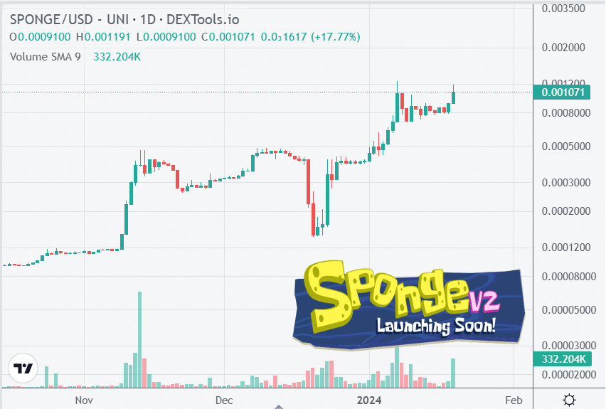 Hype surrounding Sponge V2 has driven significant gains in the price of the original Sponge token in recent weeks.