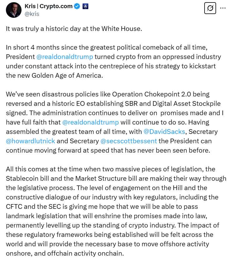 Trump hosted a White House Crypto Summit on March 7, signaling that he intends to make crypto policy a national priority and make the US a global hub for blockchain innovation.
