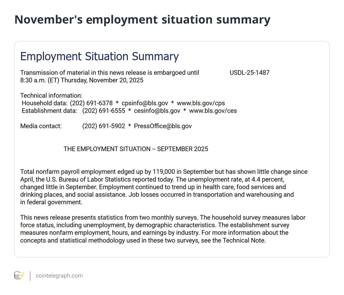 For Bitcoin and crypto, the takeaway is less weak labor equals lower prices and more that labor data helps set the macro weather. They shape growth expectations, rate paths and liquidity, and those, in turn, influence how much risk investors will take.