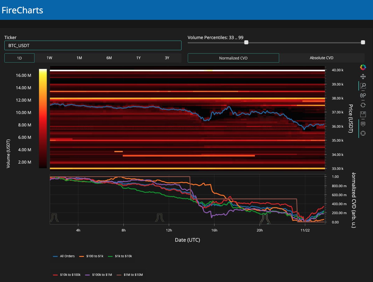 BTC/USD fell to $35,600, per data from Cointelegraph Markets Pro and TradingView — its lowest levels since Nov. 16 — before rebounding thanks to short positions closing.