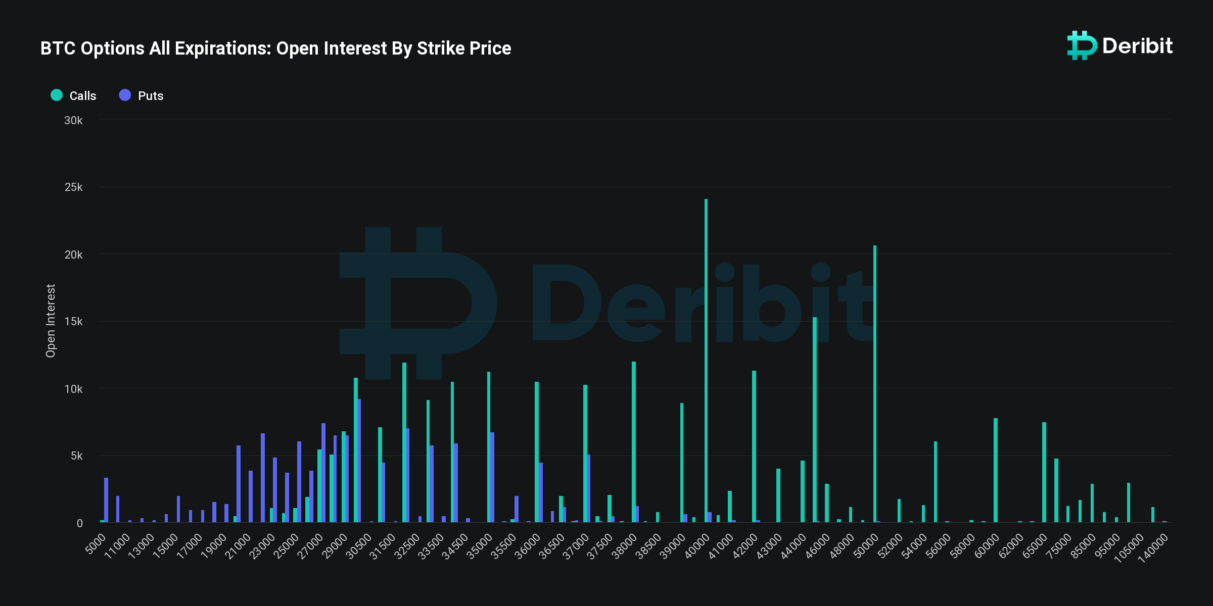 Bitcoin options open interest by strike price chart. Source: Deribit
