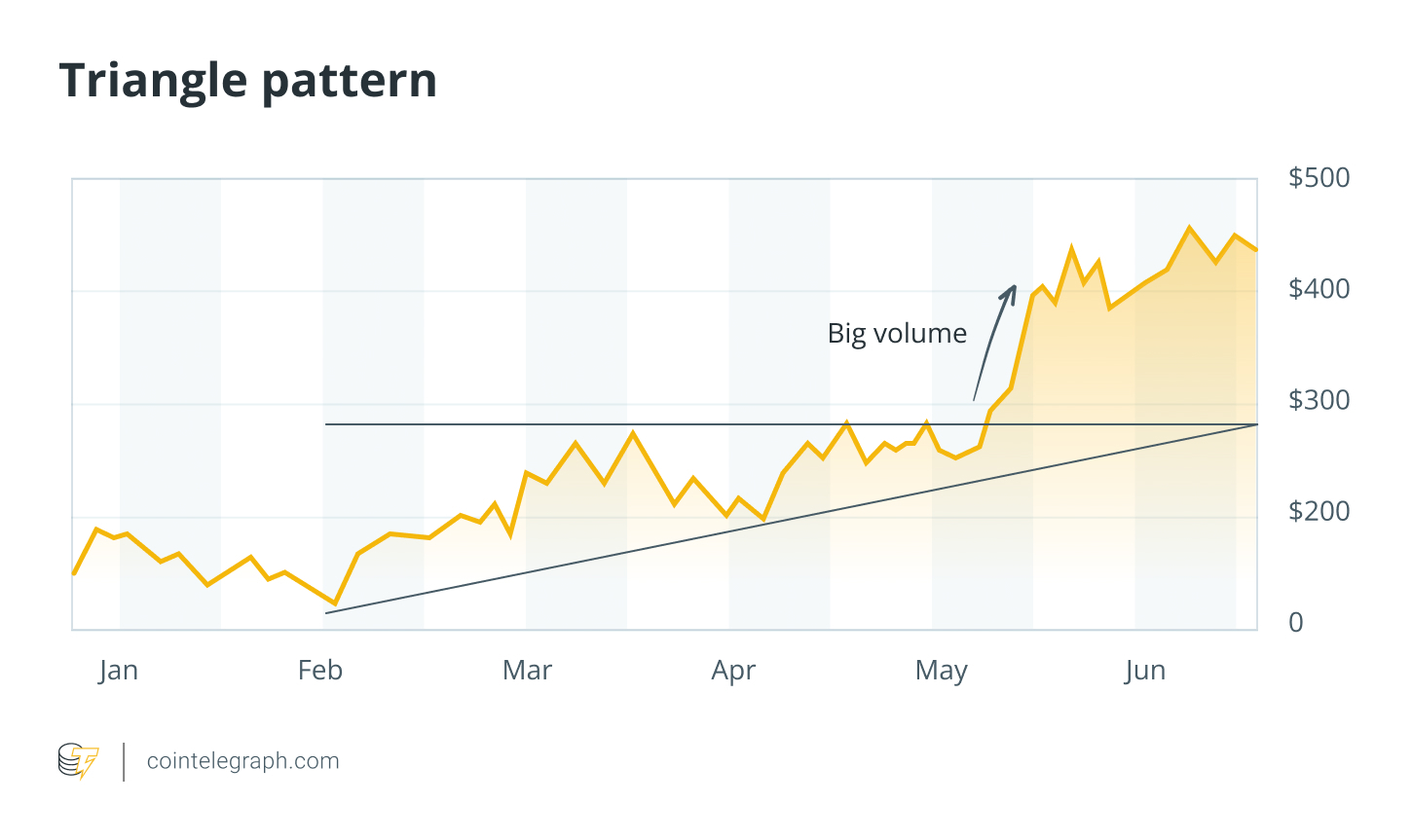 • Example: During periods of market uncertainty, asset charts often display triangle formations. In early 2025, Ether’s (ETH) price action formed a symmetrical triangle amid uncertainty surrounding decentralized finance (DeFi) regulations. The price later broke out bullishly as regulatory clarity improved.