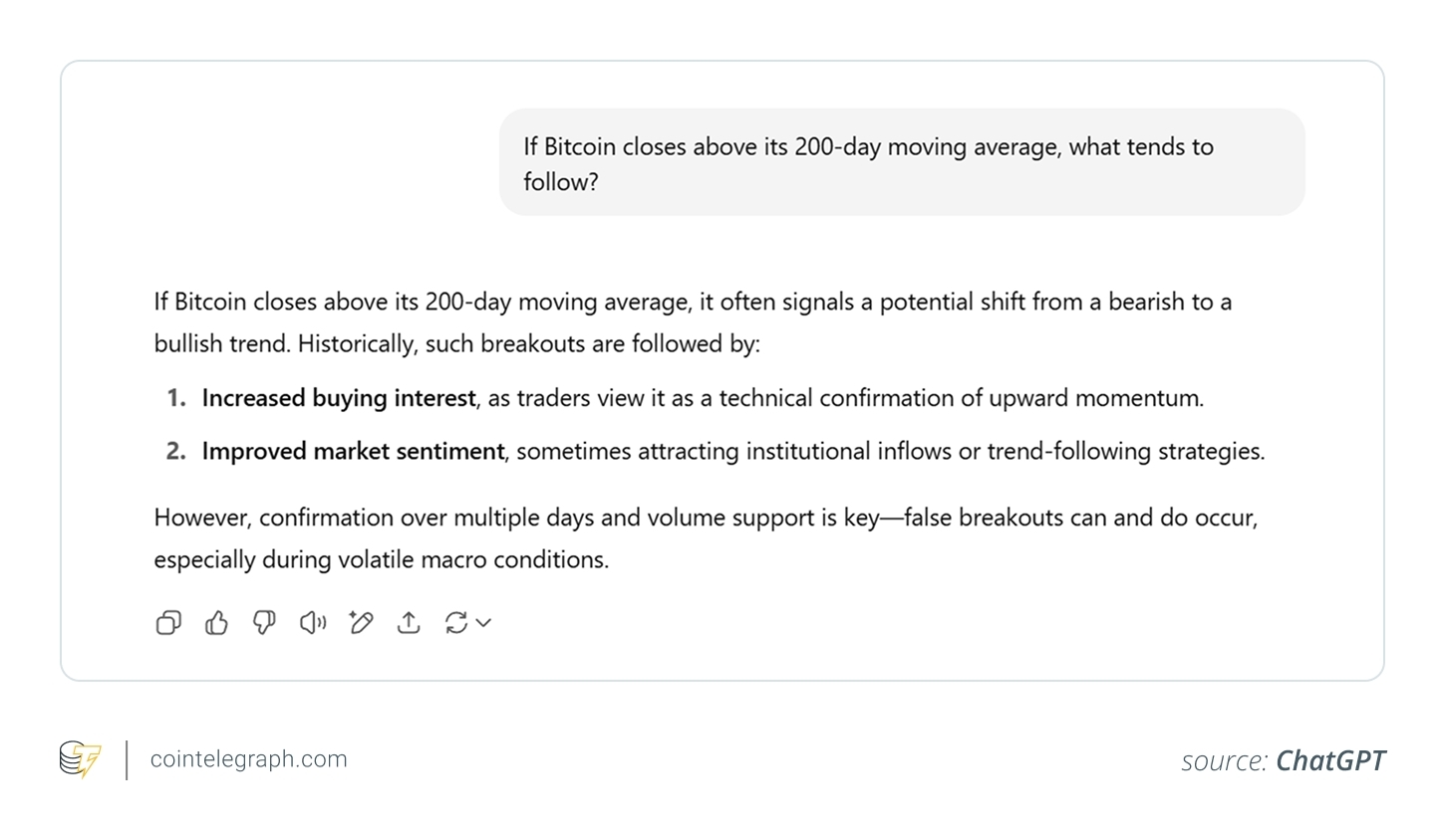 Prompt: If Bitcoin closes above its 200-day moving average, what tends to follow?