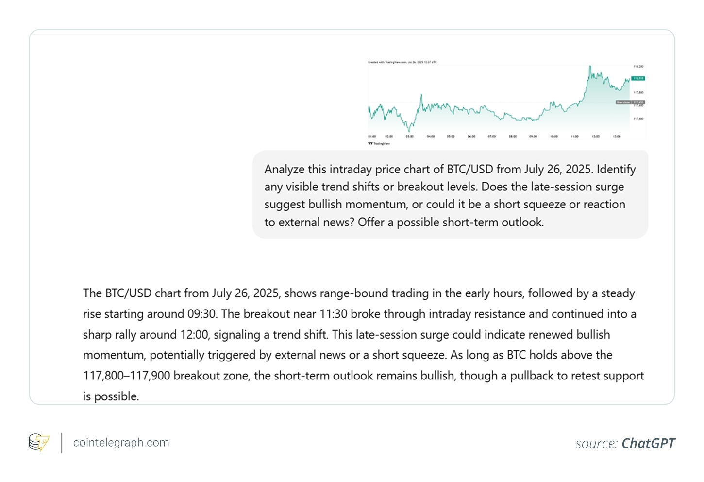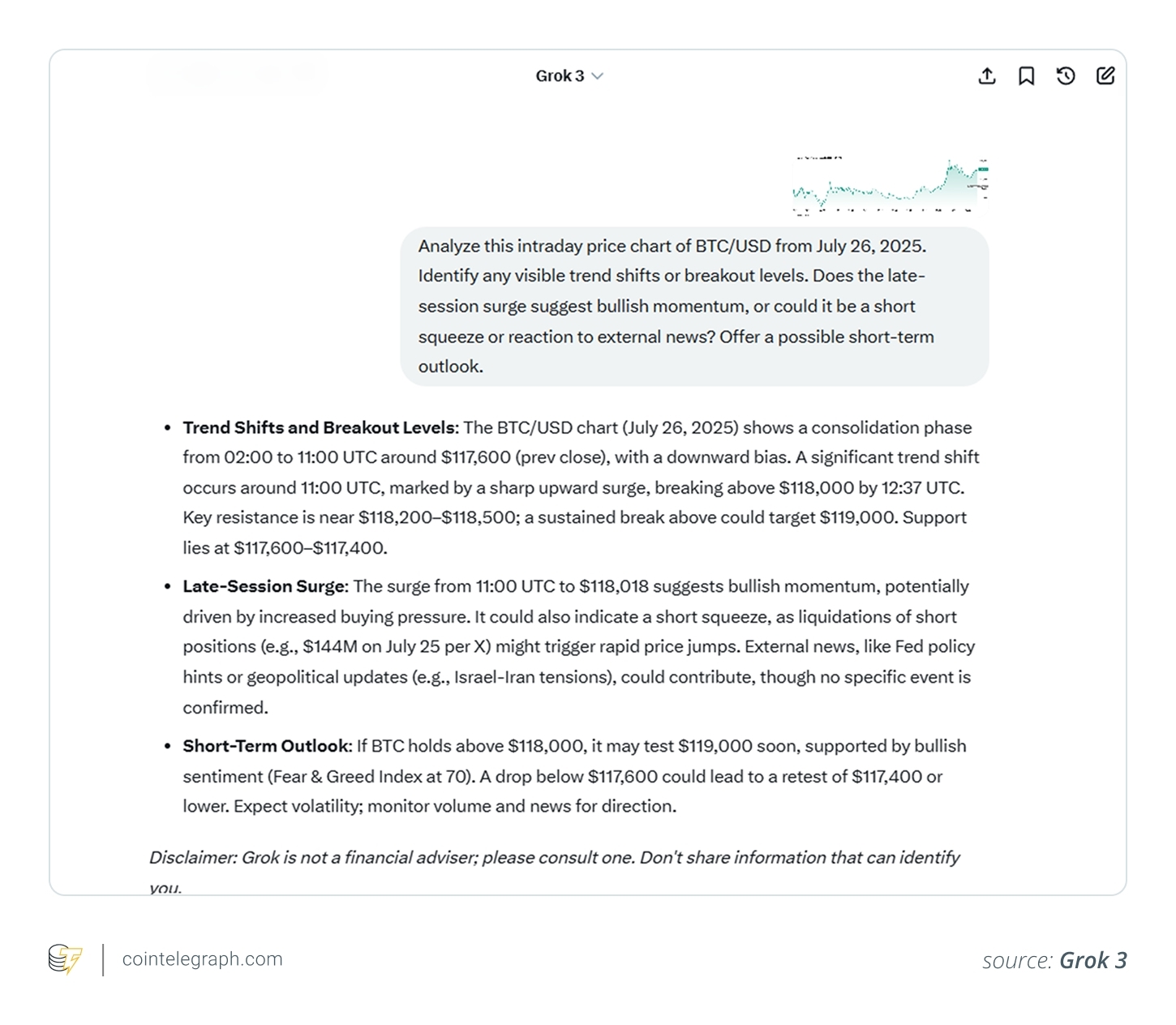 Instead of staring at graphs or toggling between indicators, traders are increasingly turning to AI models like ChatGPT and Grok for real-time context, sentiment analysis and narrative framing. These tools don’t replace charts outright, but they’re becoming the first stop for insight, transforming how many retail and semi-professional traders approach decisions.