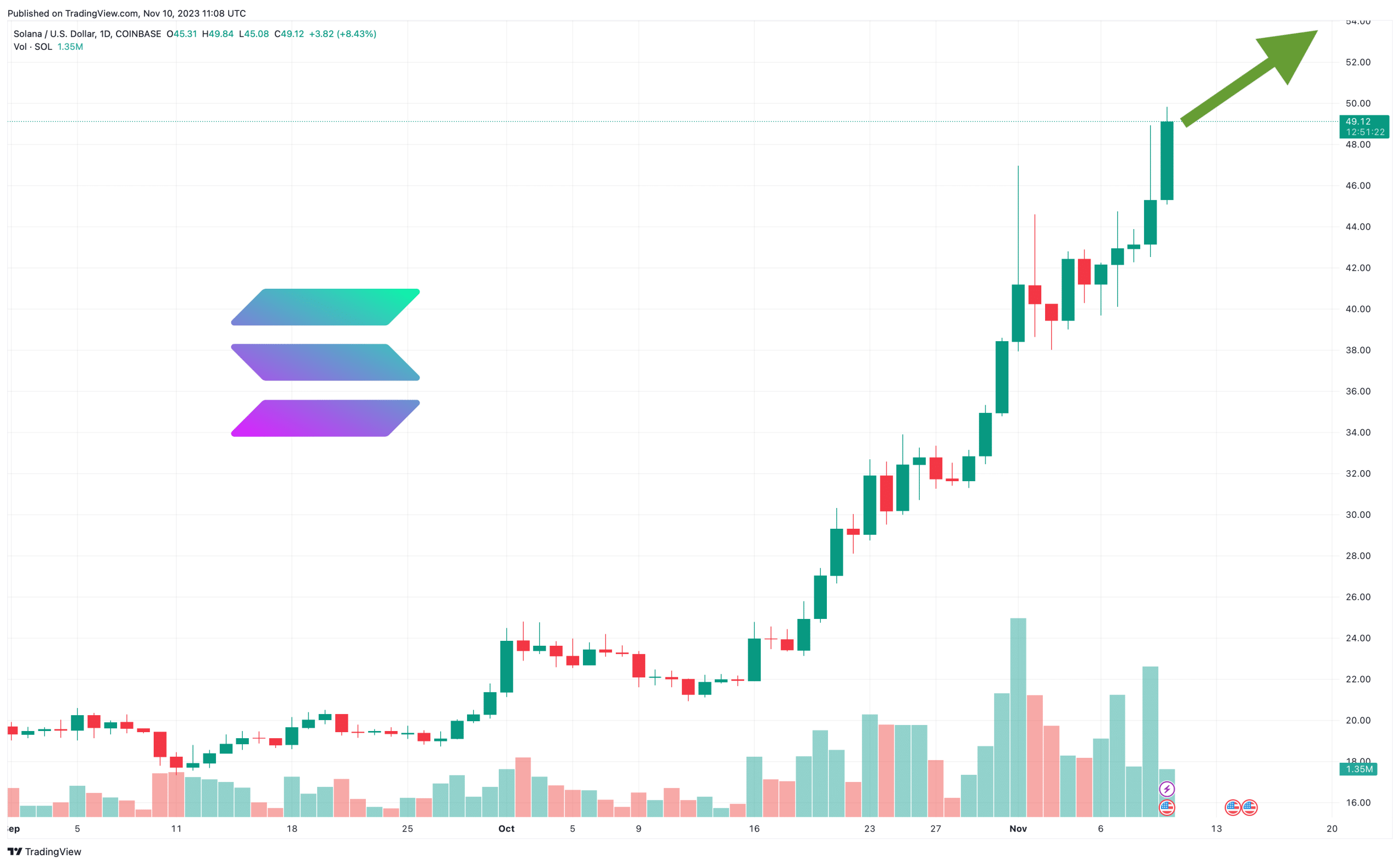 It’s also important that SOL’s trading volume has risen so much, from barely above $150 million in mid-October to $3 billion now.