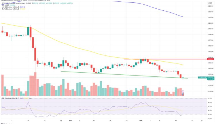 The Conflux price has fallen by 3% in the past 24 hours, with its drop to $0.103716 marking a concerning 9% loss in a week.