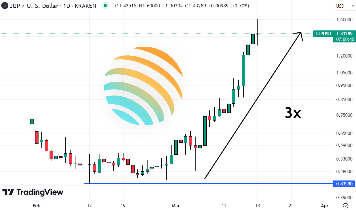 Jupiter could easily still 3x from here in the next 12 or so month as Bitcoin keeps pushing higher.