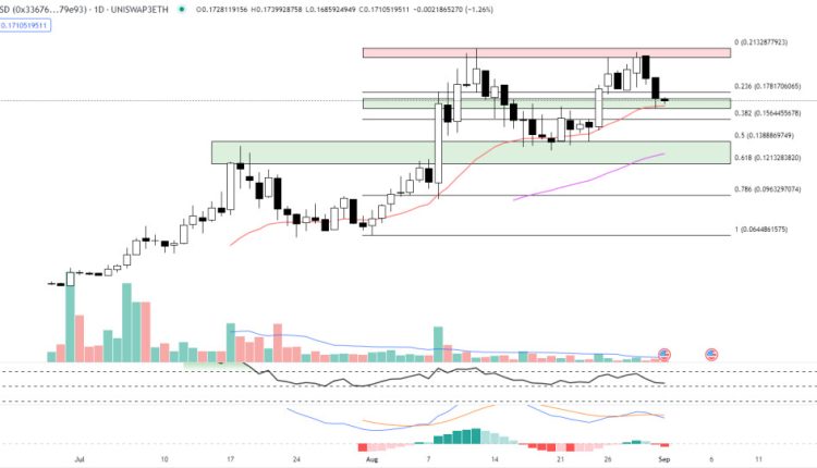 Conversely, the immediate support is found at the horizontal support zone of $0.1652 to $0.1732, which is in confluence with the 20-day EMA of $0.1670.