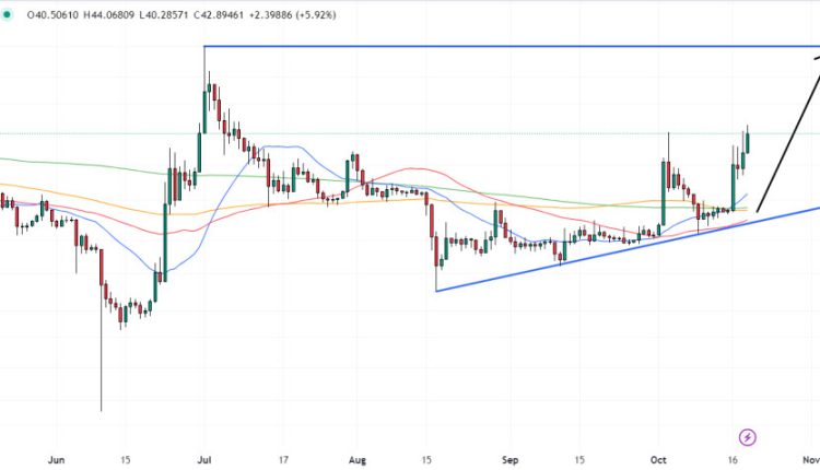 BSV, a 2018 fork of the Bitcoin blockchain that claimed to be aimed at bringing Bitcoin in line with Bitcoin creator Satoshi Nakamoto’s vision (hence its name Bitcoin Satoshi Vision or Bitcoin SV), was last trading just above $43 per token, just off its highest levels since early July.