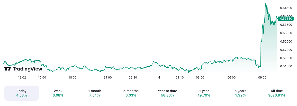 The price of XRP surged nearly 6% immediately following the news, according to data from TradingView.