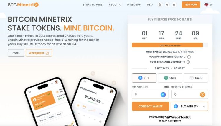 A 39-round presale for pioneering stake-to-mine crypto token Bitcoin Minetrix ($BTCMTX) will conclude in seven days after raising a staggering $13 million.