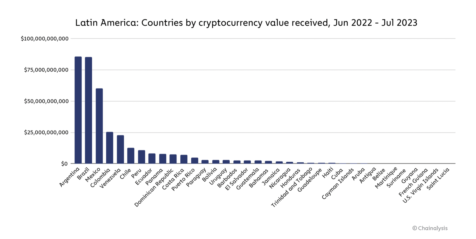 However, Argentina leads in terms of the sheer volume of cryptocurrency transactions in Latin America, having received an estimated $85.4 billion during the 12-month period ending on July 1.