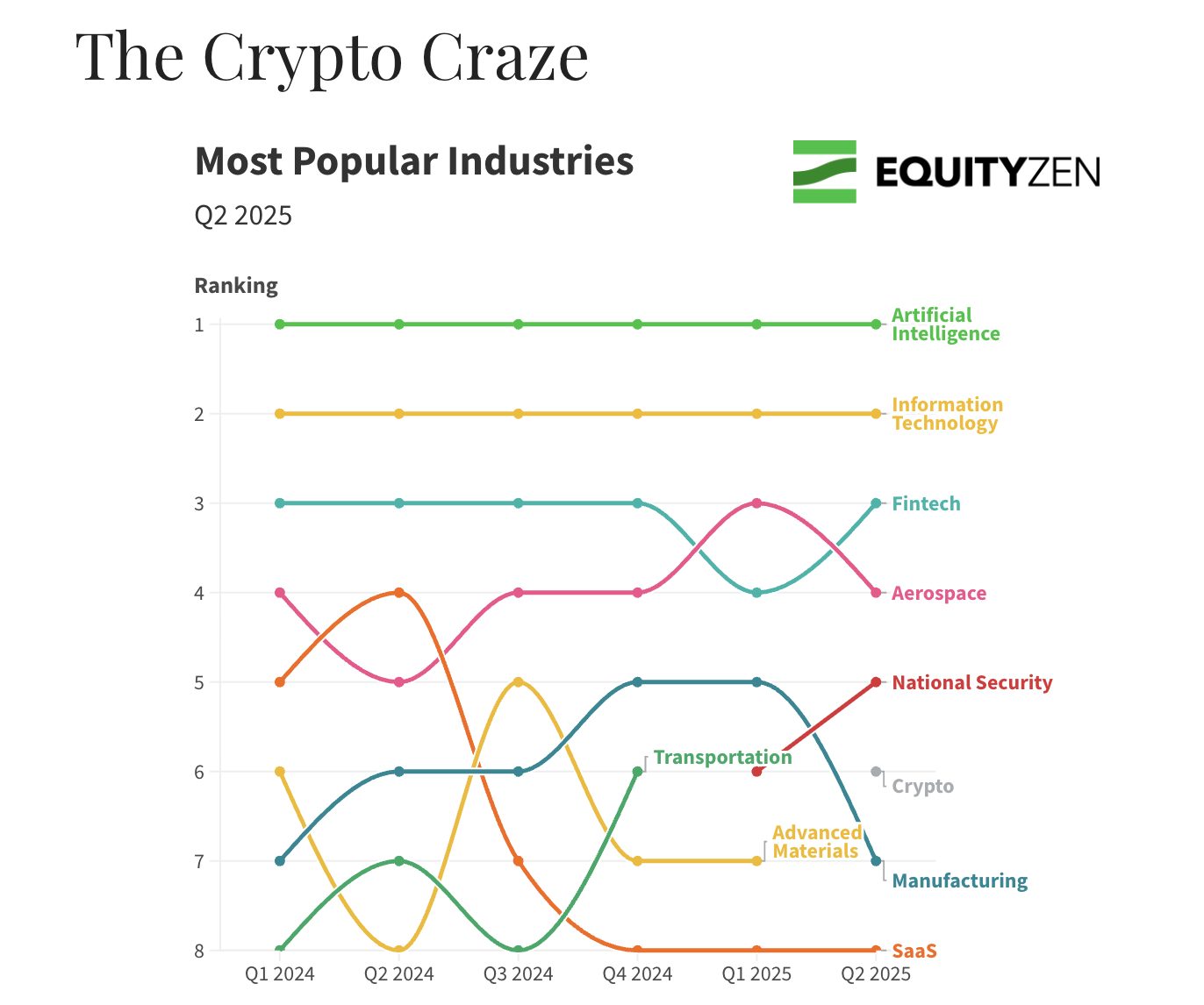 EquityZen reported that the crypto sector was the sixth most popular industry for private investments on its platform in the second quarter of 2025.