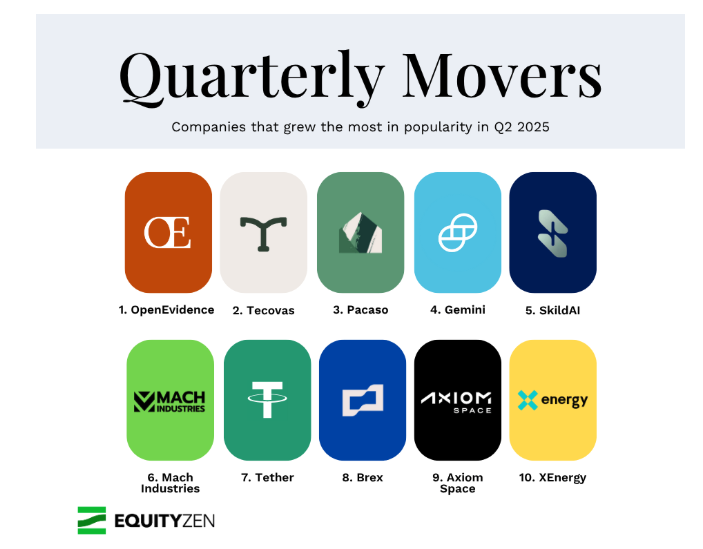 Stablecoin issuer Tether and crypto exchange Gemini were the biggest quarterly movers in Q2 on EquityZen.