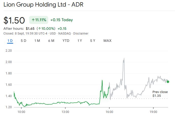 Lion Group’s stock price has reacted positively to the news, ending the latest session well into the green with gains of over 11%.