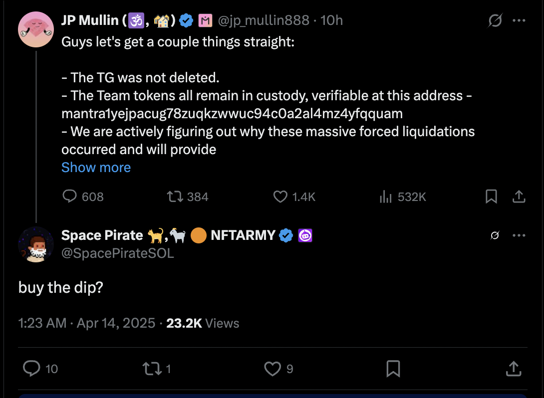 Numerous online commentators claimed the Mantra team, reportedly controlling 90% of the token supply, orchestrated the sell-off due to suspicious OM transfers to centralized exchanges right before the crash.
