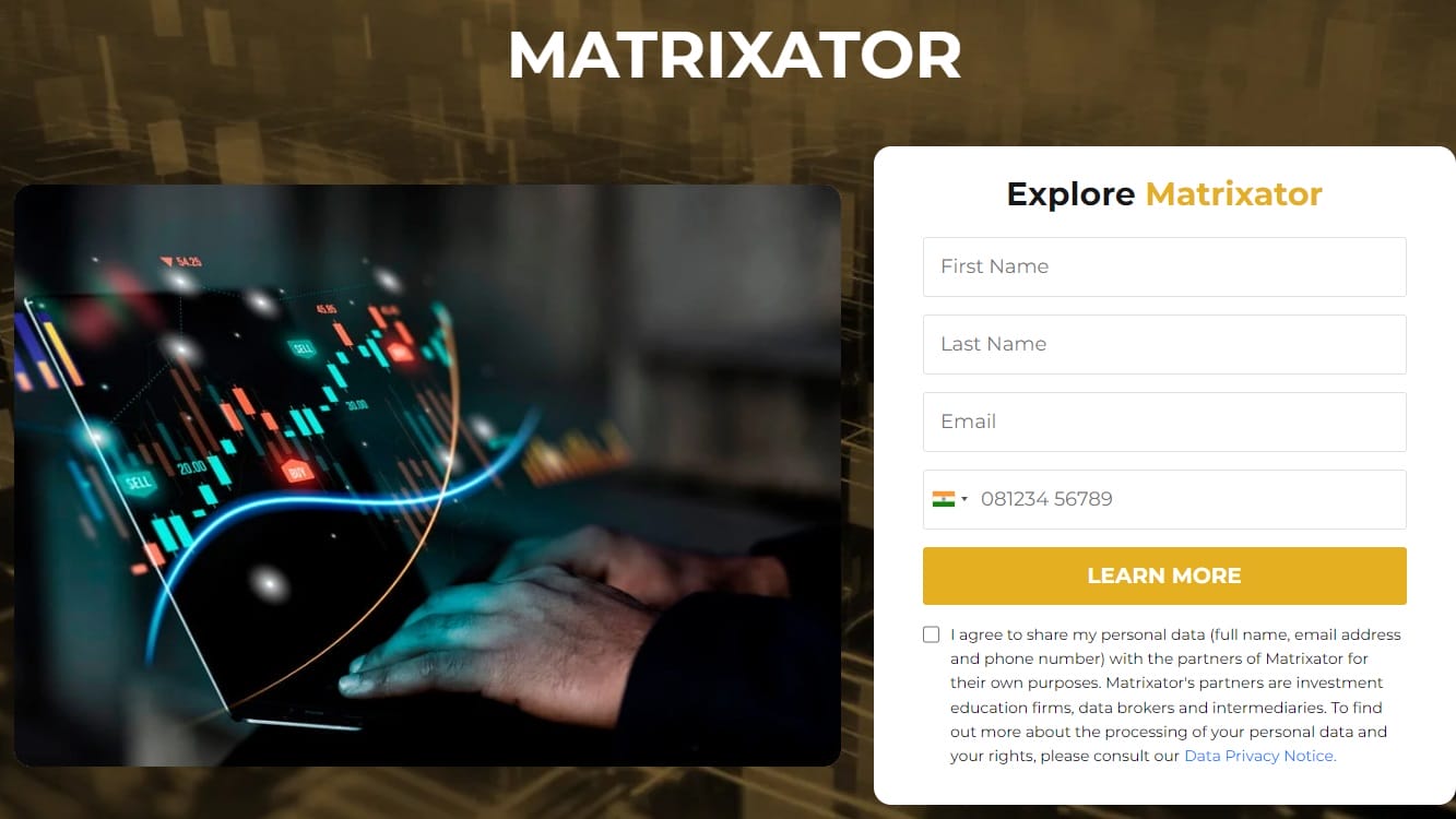 Matrixator advertises itself as a simple tool designed to connect users with investment education firms. The main goal of the website is to portray the platform as a partner of choice for investors who want to learn about diverse approaches to interact with the world of investors.