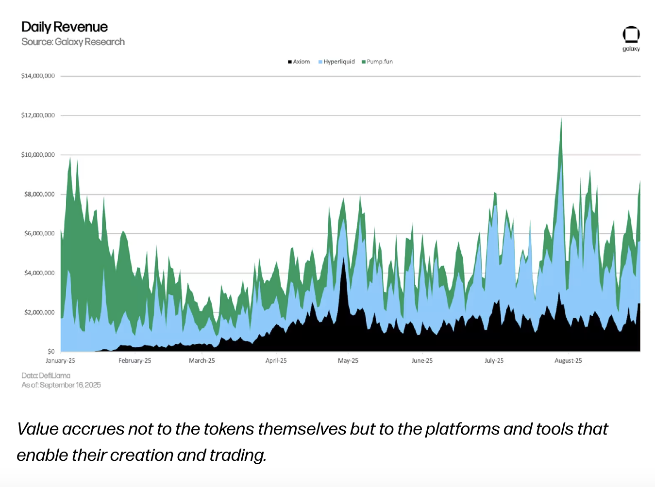 Daily revenue from memecoin infrastructure. Source: Galaxy Research