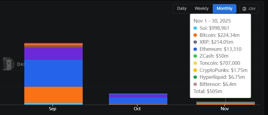 Data aggregator DefiLlama showed that the DAT inflow began to slow down in October, following the liquidation of $20 billion in crypto positions. DAT inflows decreased from nearly $11 billion in September to about $2 billion in October, representing an 80% decline.