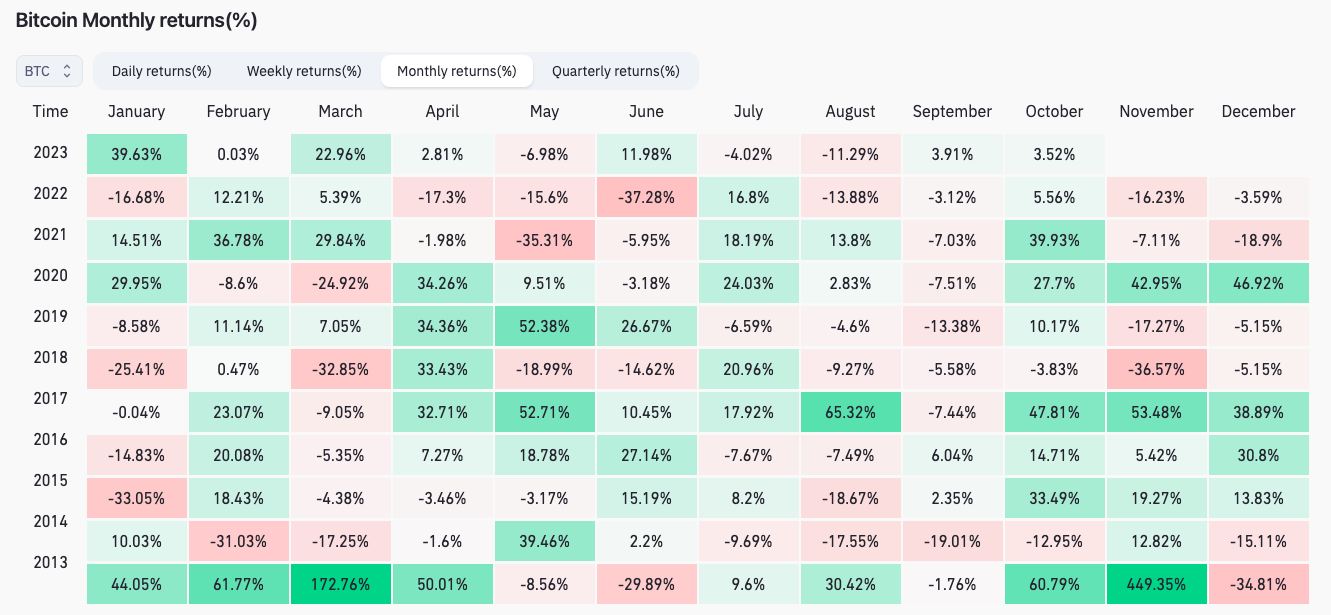 Data from CoinGlass further shows the worst October on record in 2014 produced “only” 12% losses for Bitcoin, leaving the door open for a new red record should conditions deteriorate.