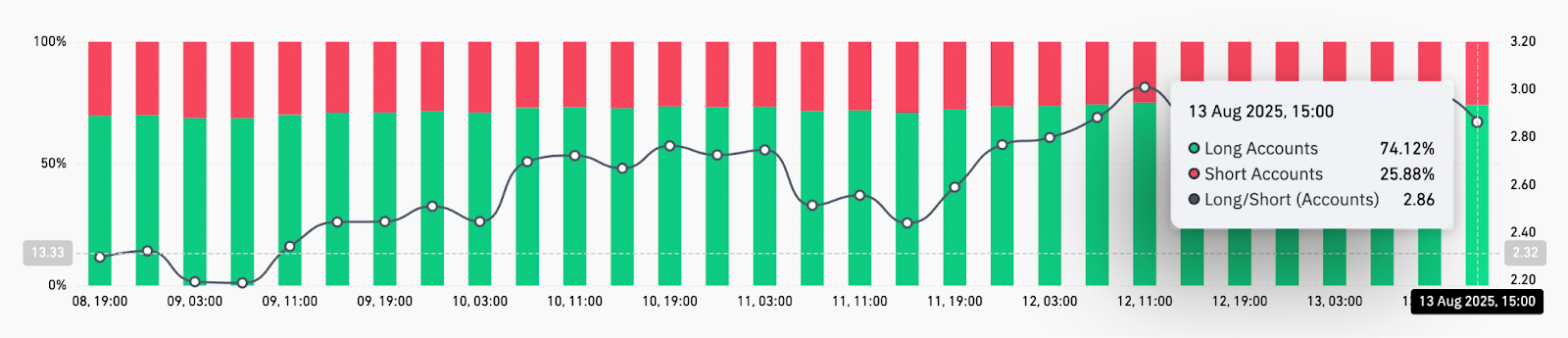 XRP’s ratio of long/short accounts on Binance is currently skewed toward bullish positions at 74%. While this heightened activity introduces liquidation risks, it underscores rising confidence in XRP’s upside potential..