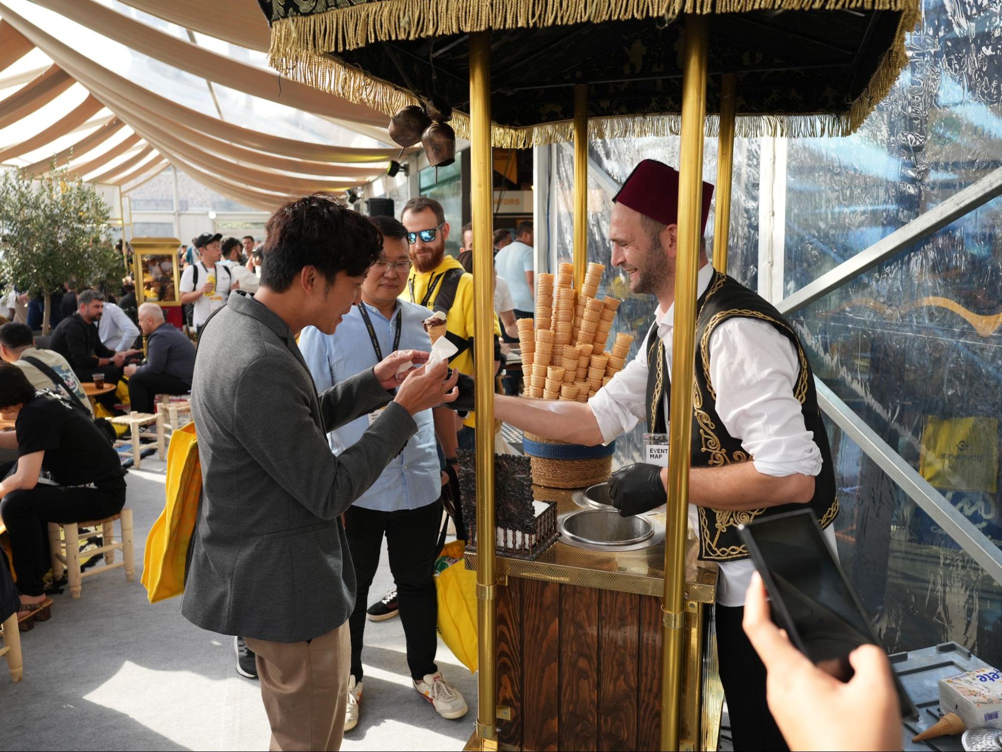 The sponsor area was next to the terrace, where the food and beverages were served. Despite the overwhelming crowd, a rich selection of food was always available. Aside from the main dishes, visitors were lining up to taste local delicacies such as simit (a kind of Turkish bagel), Maras-style ice cream and Turkish coffee.