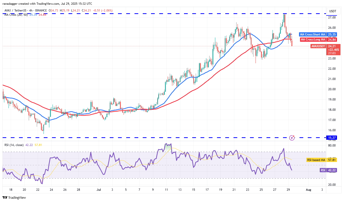 The upsloping 20-day SMA ($23.52) and the RSI in the positive zone suggest that the buyers have the upper hand. If the bulls pierce the $27.38 resistance, the AVAX/USDT pair could start a new up move. The pair could rally to $36 and then to the target objective of $39.49.