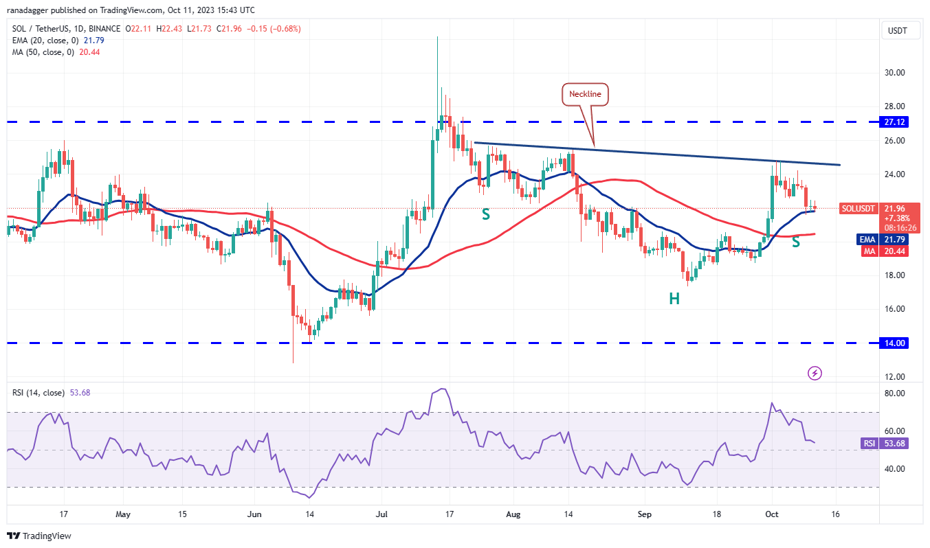 If the price rebounds off the 50-day SMA, the bulls will attempt to propel the price above the 20-day EMA. That could open the doors for a potential rally to $28,143.