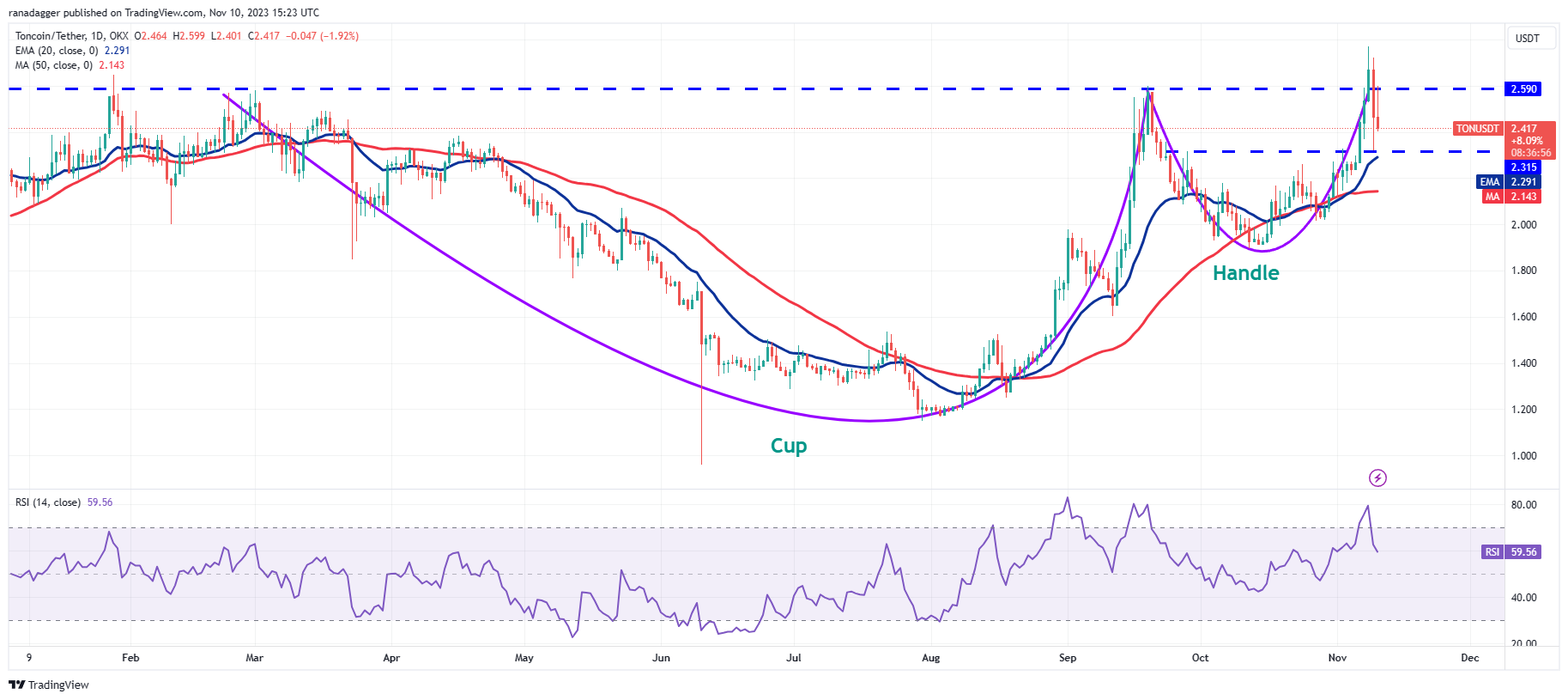 Toncoin (TON) closed above $2.59 on Nov. 8, but the bulls could not maintain the higher levels. The price turned down sharply and slipped back below $2.59 on Nov. 9.