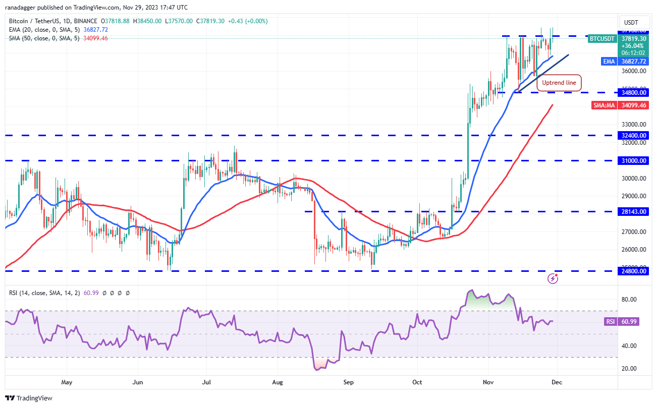 Bitcoin again rose above the $37,980 resistance on Nov. 28, but the bulls could not achieve a close above it. This shows that the bears are fiercely defending the level.