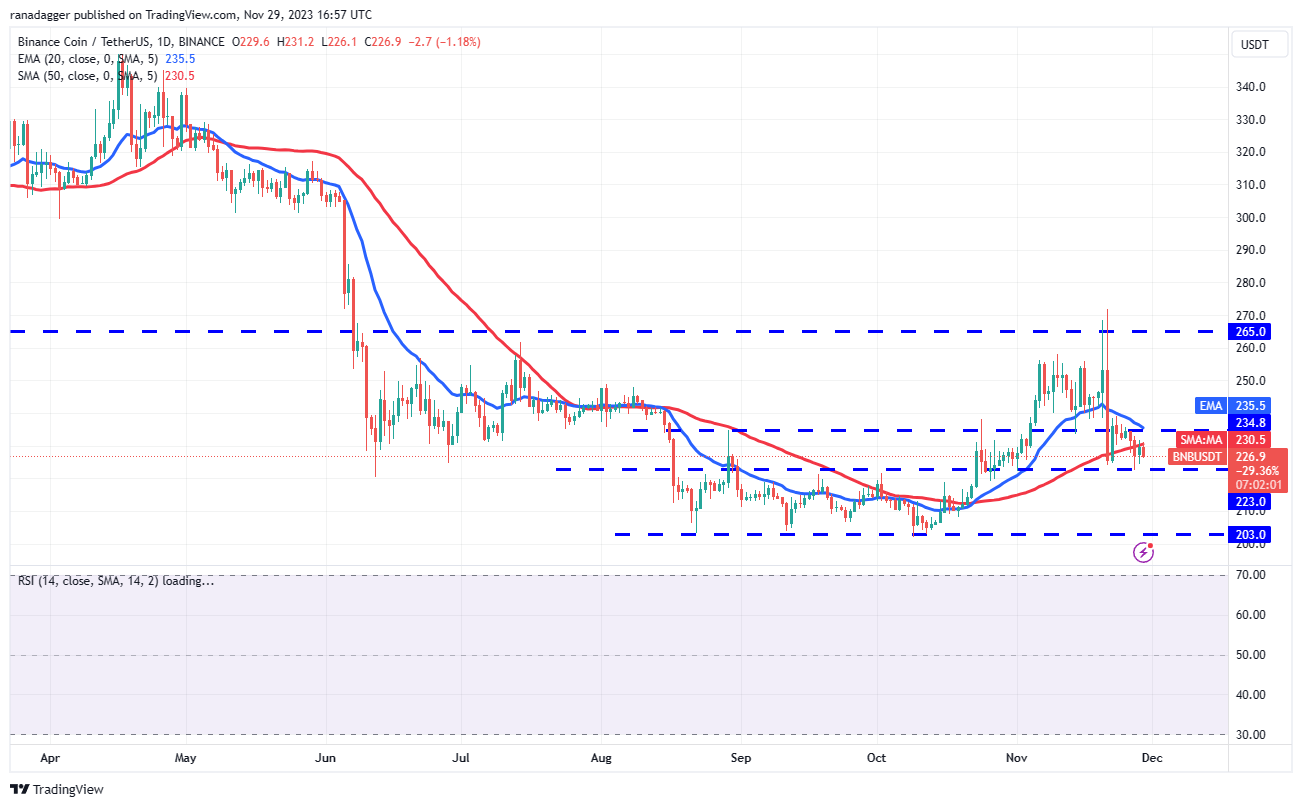 The bears tried to yank BNB (BNB) below the $223 support on Nov. 27, but the bulls did not relent. This suggests demand at lower levels.