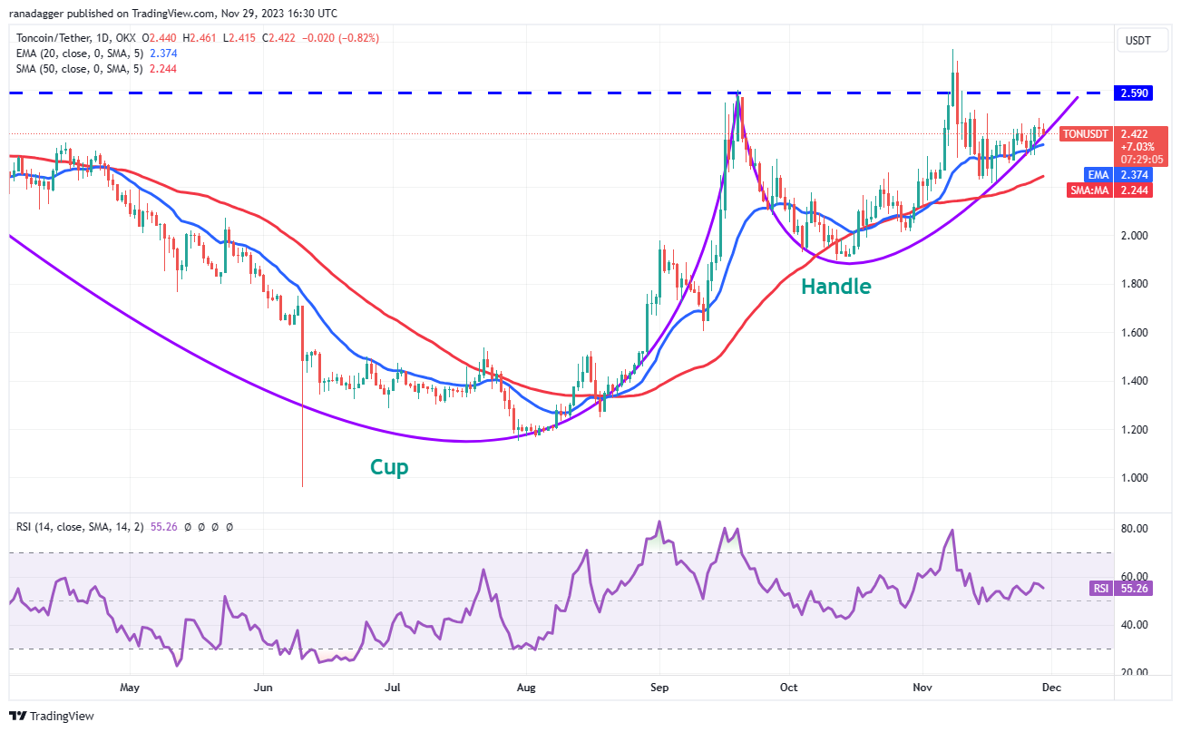 Toncoin (TON) has been trading above the 20-day EMA ($2.37) for the past few days, but the bulls are struggling to push the price to $2.59. This suggests that demand dries up at higher levels.