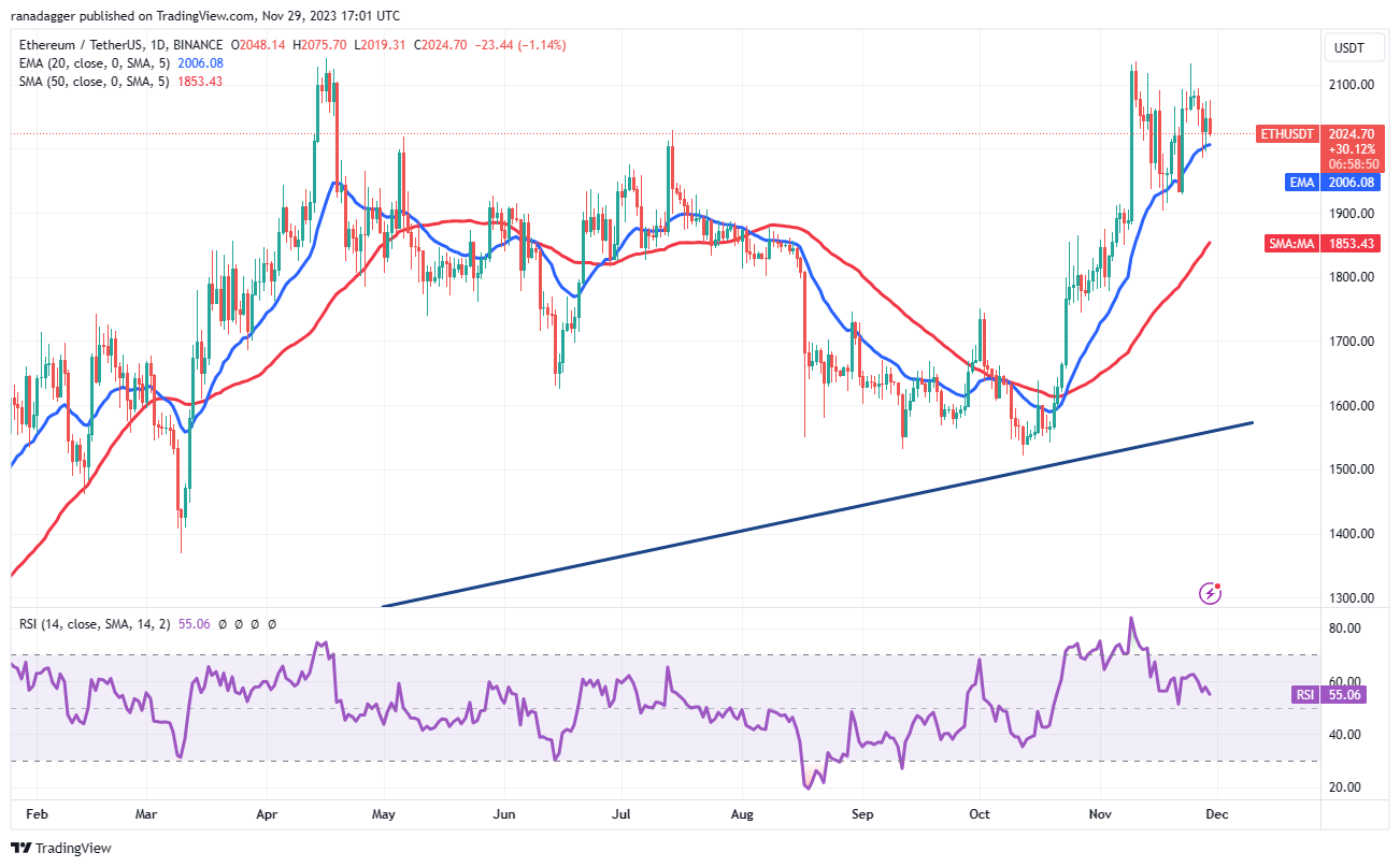 Ether (ETH) again found support at the 20-day EMA ($2,006) on Nov. 27 and 28, indicating that the bulls view the dips as a buying opportunity.