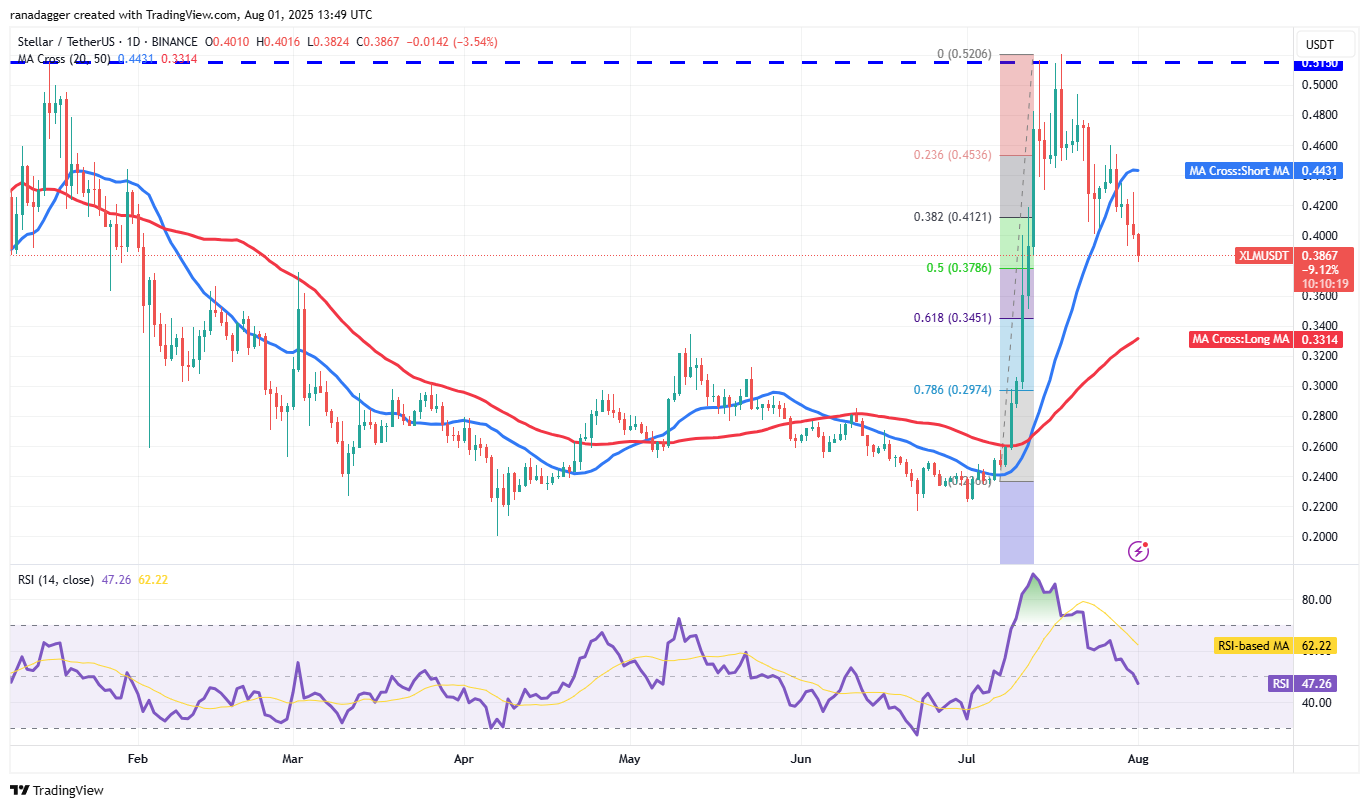 The first sign of strength will be a break and close above the 20-day SMA. That opens the doors for a retest of the $0.52 level, where sellers are expected to step in. If the price turns down sharply from $0.52, the XLM/USDT pair could enter a period of consolidation.